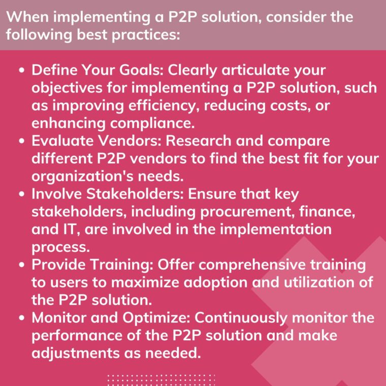 - Provide Training: Offer comprehensive training to users to maximize adoption and utilization of the P2P solution.